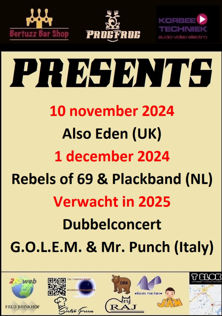 Uiteraard publiceren wij ook de komende optredens op deze site met links voor details naar de ProgFrog-site.